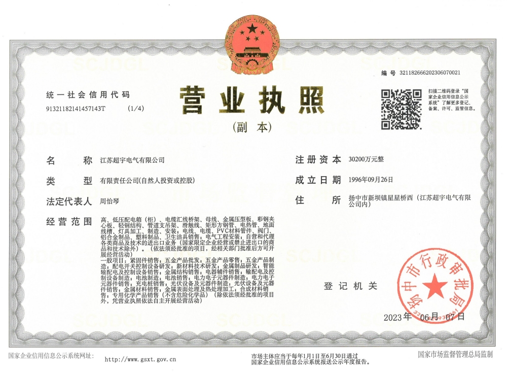 江蘇超宇電氣有限公司地處繁榮富饒的長(zhǎng)江金三角,座落在聞名遐邇的生態(tài)示范區(qū)水上花園城市--揚(yáng)中。公司成立于一九九六年,經(jīng)過(guò)二十多年的發(fā)展進(jìn)步,目前已形成專(zhuān)業(yè)化生產(chǎn)制造規(guī)模。 公司現(xiàn)有注冊(cè)資金3.0... ... [詳細(xì)>>]